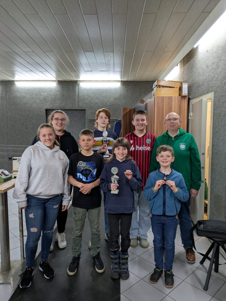 Im Rahmen einer kleinen Siegesfeier wurden die Pokale und Platzierungsnadeln durch den Jugendwart Markus Niemeyer und Stellvertreterin Janina Ingelmann überreicht.